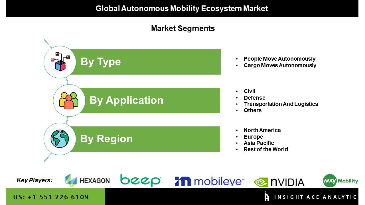 Autonomous Mobility Ecosystem Market, Share & Trends Analysis Report, By Type (People Move Autonomously, Cargo Moves Autonomously), By Application (Civil, Defense, Transportation and Logistics, Others), By Region, and Segment Forecasts, 2024-2031