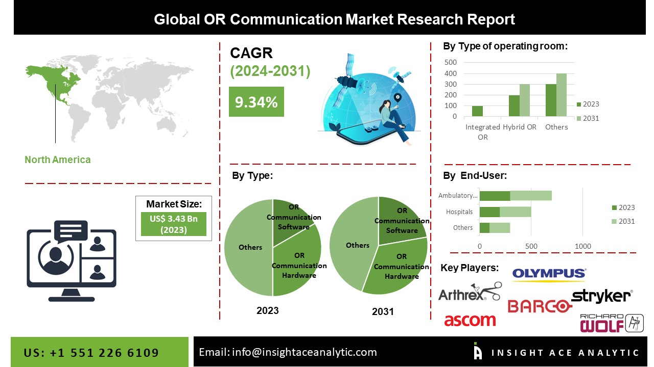 The OR Communication Market Size is valued at 3.43 Billion in 2023 and is predicted to reach 6.88 Billion by the year 2031 at a 9.34 % CAGR during the forecast period for 2024-2031.